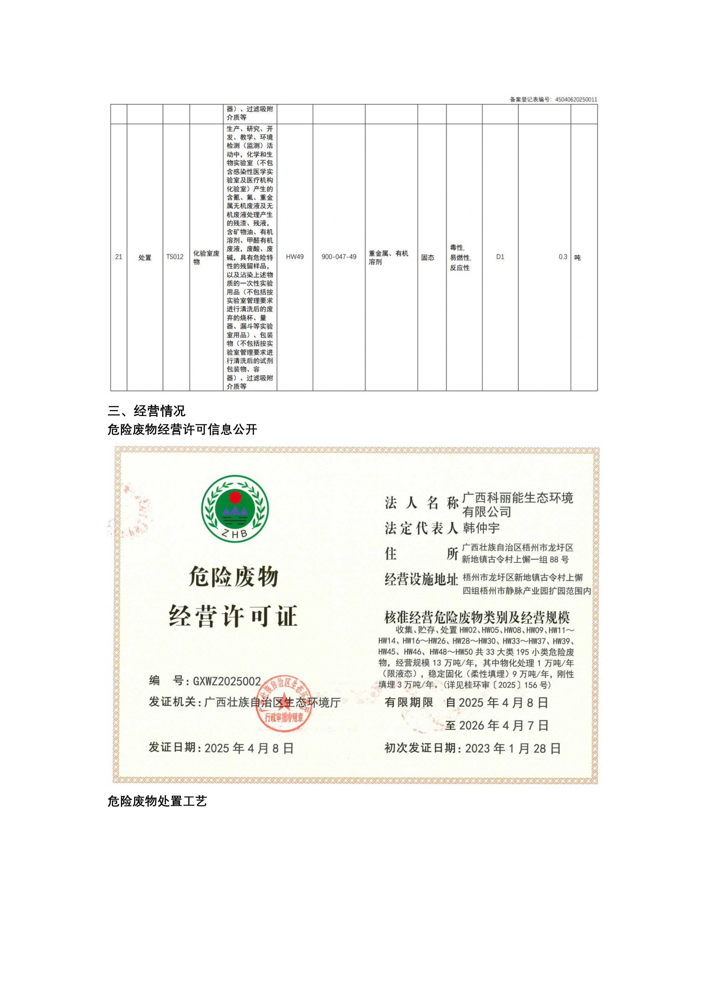 2025年廣西科麗能生態(tài)環(huán)境有限公司固體廢物及污染防治信息與環(huán)境應(yīng)急公開